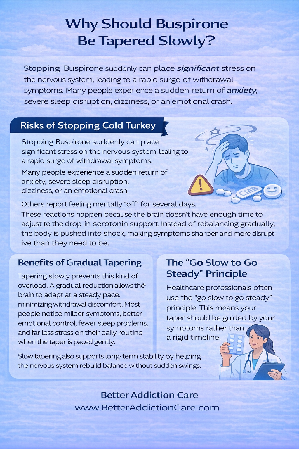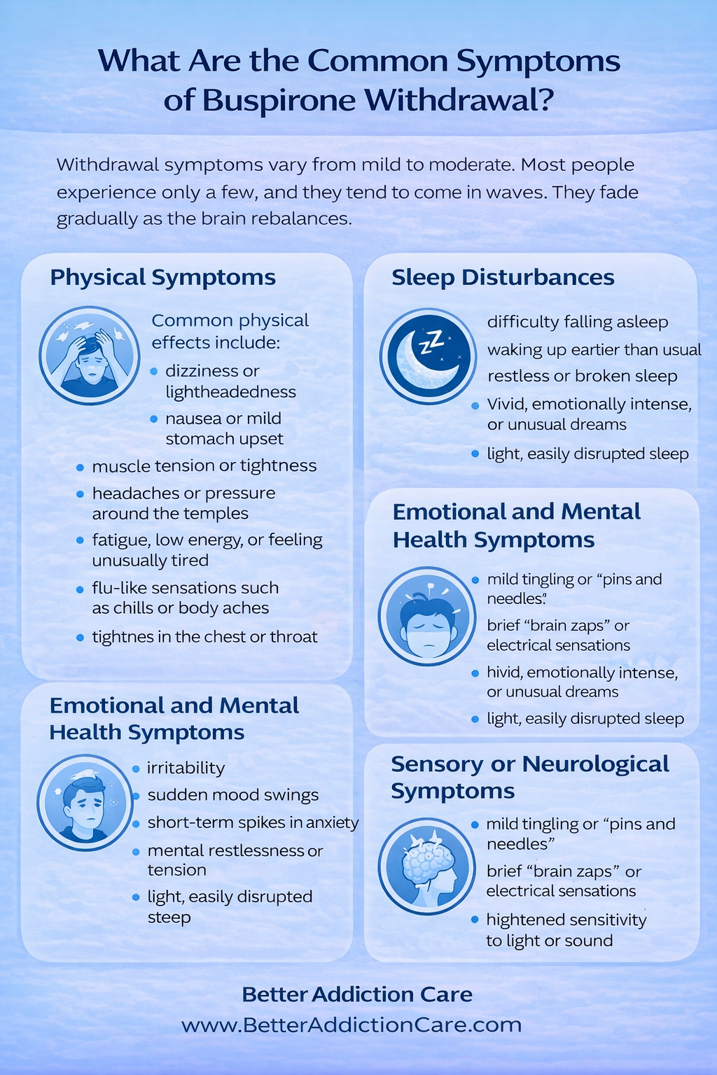 Buspirone withdrawal can feel uncomfortable, but it is temporary and manageable. It does not mean you are addicted. It does not mean you are failing. It simply reflects your brain finding balance again.