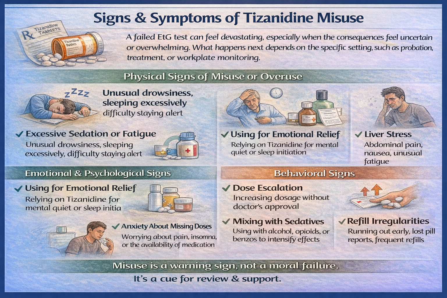 Tizanidine misuse and dependence can develop quietly, especially when it’s used for sleep, anxiety relief, or pain beyond its intended purpose.