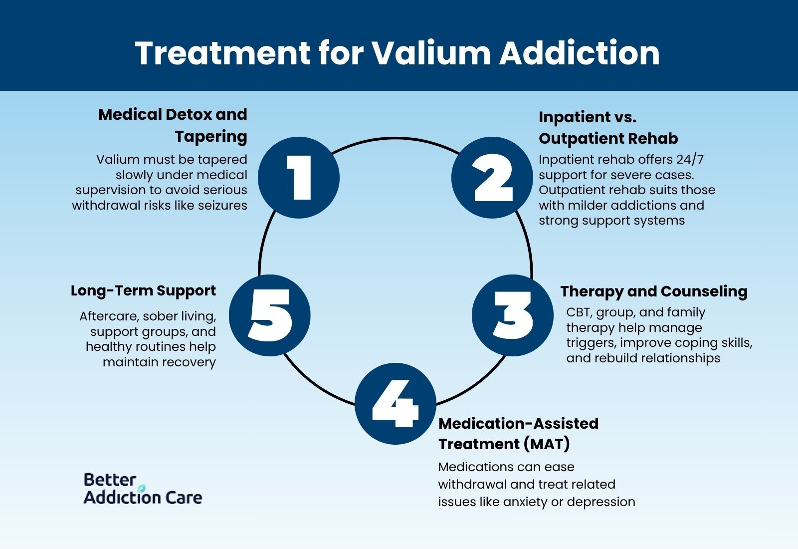 While there is no specific “replacement drug” for Valium, medications may be used to ease withdrawal symptoms, stabilize mood, or address co-occurring disorders like depression or anxiety. This approach reduces the risk of relapse and makes therapy more effective [1][3].