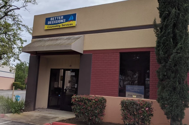 Better Decisions Counseling Services is an substance abuse treatment center that provides outpatient treatment for men and women from 18+ years of age. As part of their special programs, Better Decisions Counseling Services To help patients achieve sobriety, Better Decisions Counseling Services provides intake assessments. Afterward, patients receive during treatment. Better Decisions Counseling Services is located in Sacramento, California, providing treatment for people in Sacramento County, accepting cash or self-payment.