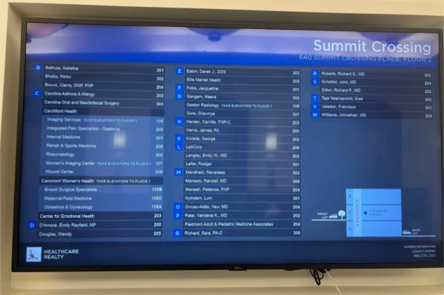 Center for Emotional Health is an mental health treatment center that provides outpatient treatment for men and women from 18+ years of age. As part of their special programs, Center for Emotional Health To help patients achieve sobriety, Center for Emotional Health provides intake assessments. Afterward, patients receive during treatment. Center for Emotional Health is located in Gastonia, North Carolina, providing treatment for people in Gaston County, accepting cash or self-payment.
